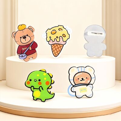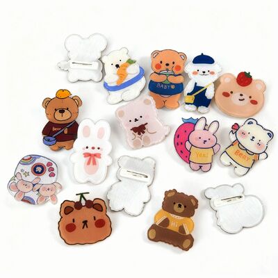 Stwórz spersonalizowane akrylowe szpilki do włosów, odznaki przyciskowe i akcesoria z niestandardowo wydrukowanymi logo, wzory kreskówek, postaci anime lub nazwisk.Te wszechstronne szpilki posiadają magnetyczne oparcie do bezpiecznego mocowania na różnych powierzchniach.