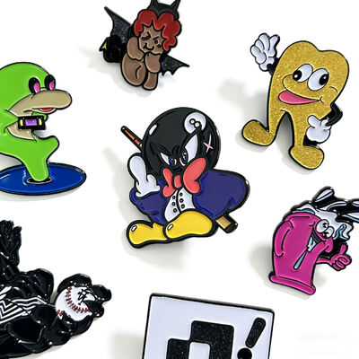 Najwyższej jakości hurtowe przypinki emaliowane z sitodrukiem do zastosowań brandingowych odzieży i akcesoriów.